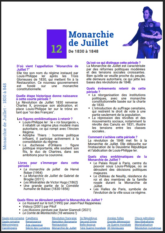 À force de revenir à ces fiches, vous situerez un personnage historique, un roi, une révolution sans hésitation.