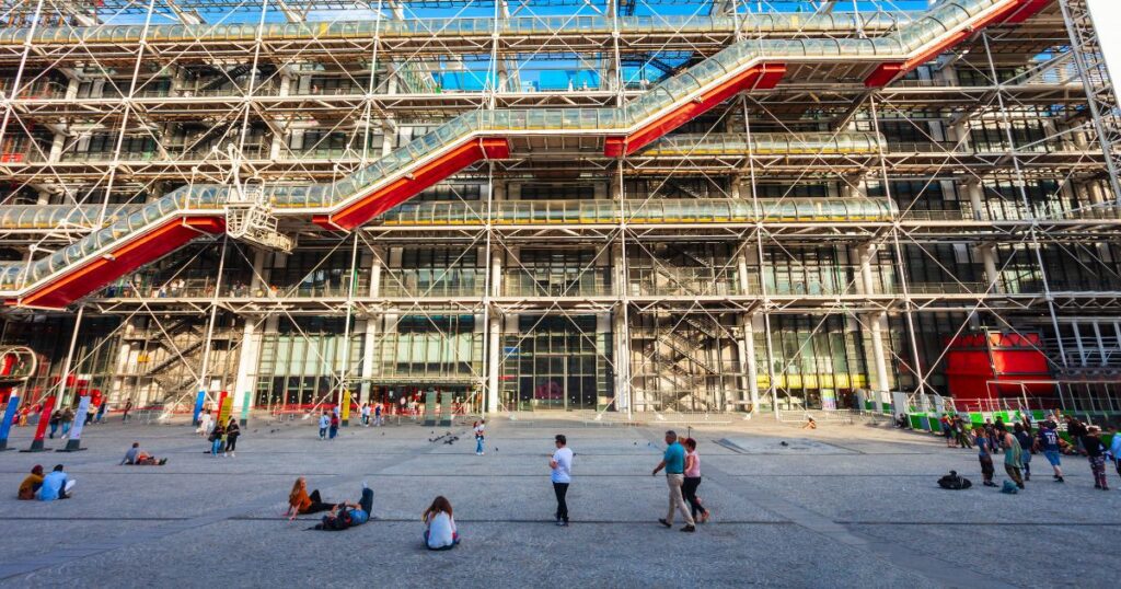 Le Centre Pompidou n’est pas un musée comme les autres. Ses escalators extérieurs, ses tuyaux apparents, sa structure exposée : tout y est visible. En gros, l’architecture désacralise l’art, elle le rend plus accessible, même sans bagage.